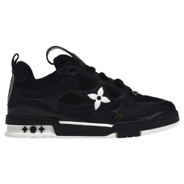 The LV Skate sneaker is a premium homage to 1990s skate culture, blending an exaggerated, voluminous silhouette with the Maison’s signature luxury craftsmanship. This model features a highly technical upper constructed from a mix of fine mesh and smooth calf leather, creating a textured, multi-layered look.